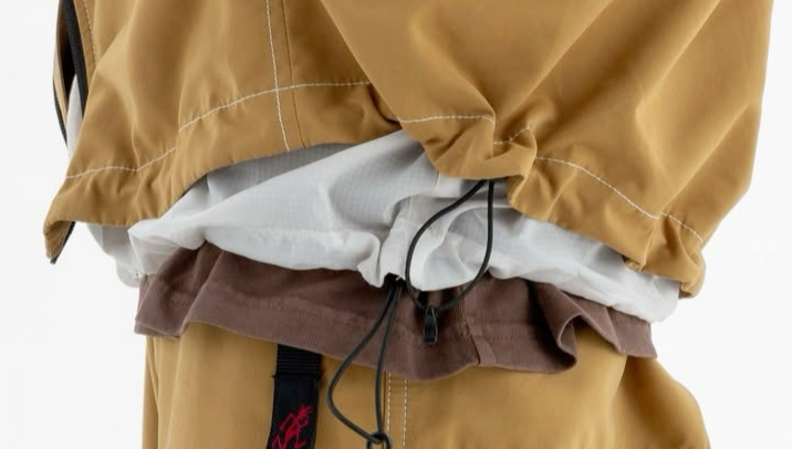 一体式防松脱尼龙速开腰带和裆部拼片立体剪裁这两个特征源自gramicci对空手道道袍长裤的改良,而非北面紫标。