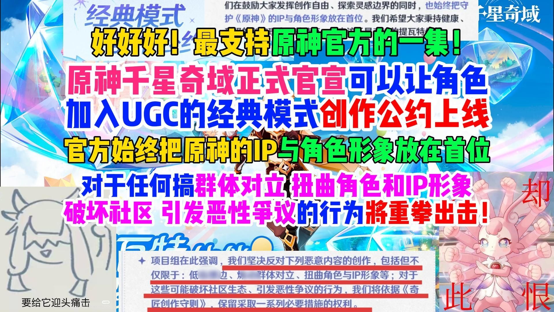 ![]() ![]() 好好好!最支持的一集!原神千星奇域官宣可以让角色加入UGC的经典模式创作公约正式上线!对于任何群体对立、扭曲角色和IP形象、破坏社区生态的行为将重拳出击! 不当咕咕咕的鸽子 发布时间2026/01/12 11:08:29 | 376 | 60 | 235 | 5594 | 更多 |
