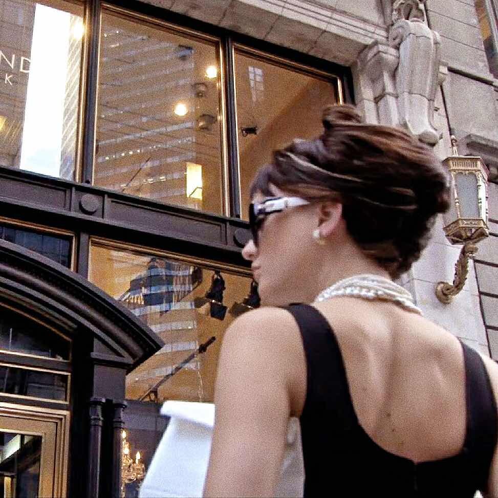 戴珍珠和卡地亚腕表,黑灰色贴身羊绒衣被她穿成时尚高定,她就像一只波斯猫,优雅又警觉。
