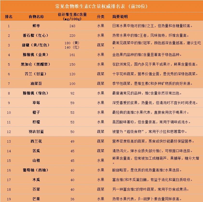 ![]() 一图概览,常见食物维生素C含量权威排名表 | - | - | - | 2 |