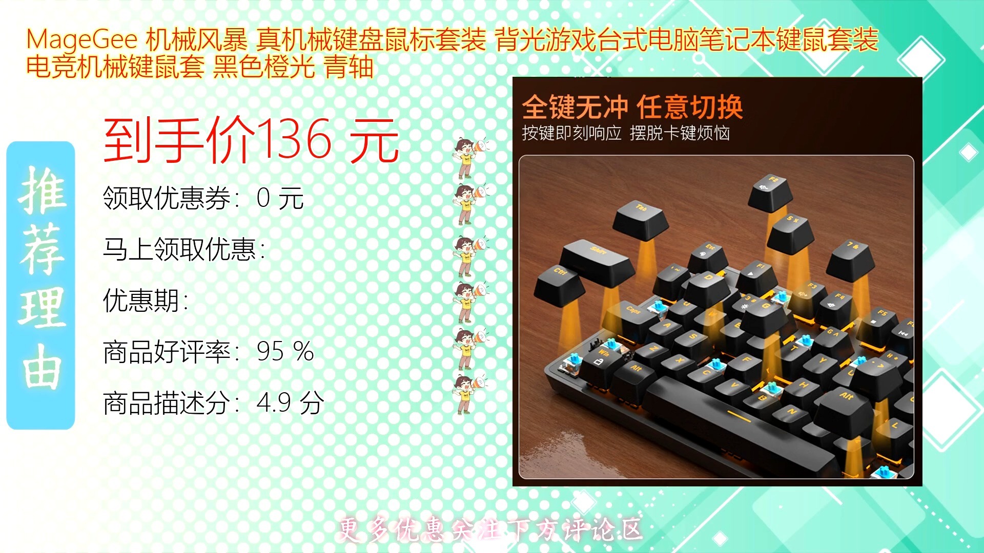 ![]() ![]() MageGee机械风暴真机械键盘鼠标套装采用高精度机械轴体与炫酷背光设计 黑色橙配色彰显电竞风格 专为游戏爱好者打造 操作响应灵敏 适合台式机笔记本多场景使用 是丽大丽啊 发布时间2025/09/26 00:52:05 | 1 | 0 | 0 | 0 |