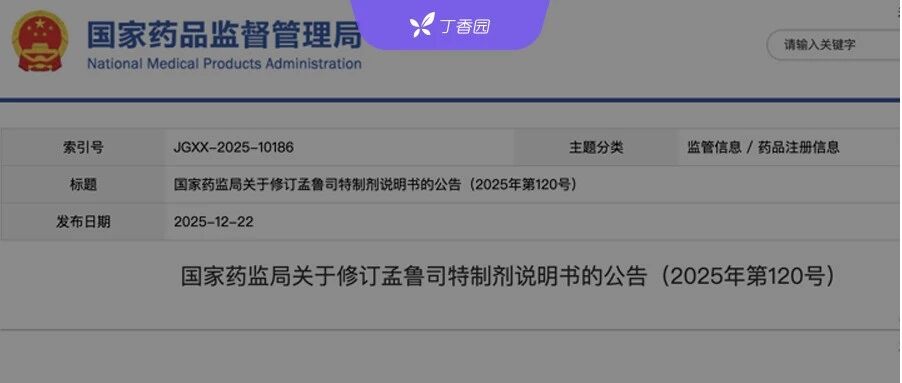 ![]() 国家药监局修订孟鲁司特说明书,严重不良反应涉及抑郁和自杀倾向 丁香园 发布时间2025/12/24 04:31:08 | 12 | - | - | 493 | 更多 |
