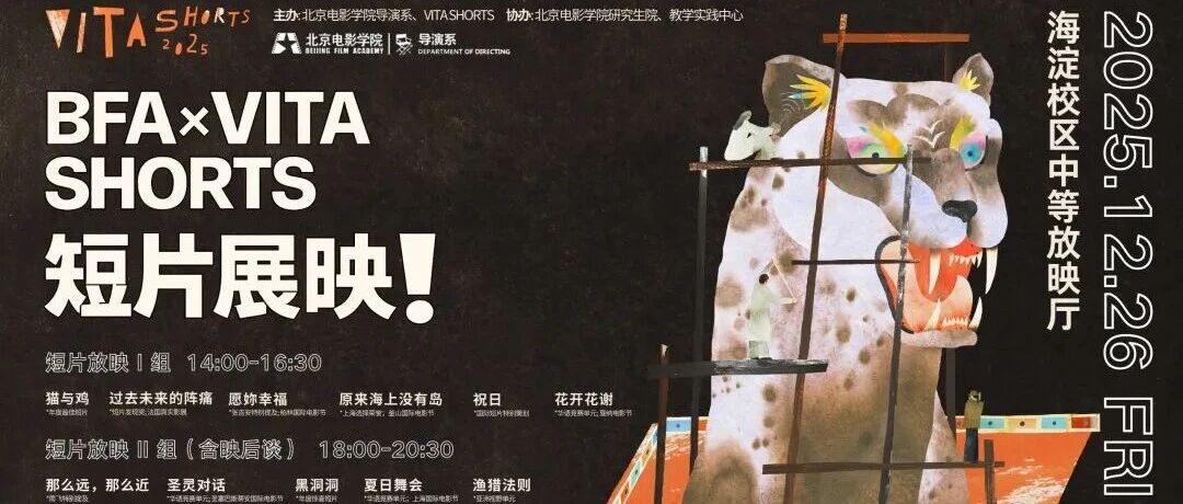 ![]() 12/26 放映|VITA SHORTS @北京电影学院导演系联合呈现11部短片 北京电影学院导演系 发布时间2025/12/22 09:44:47 | - | - | - | 31 | 更多 |
