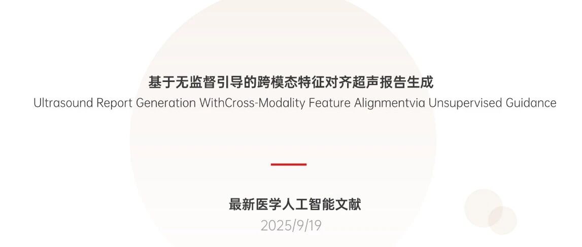 ![]() 基于无监督引导的跨模态特征对齐超声报告生成|文献速递-最新医学人工智能文献 美好事物中转站 发布时间2025/09/19 10:30:30 | - | - | - | 1 |