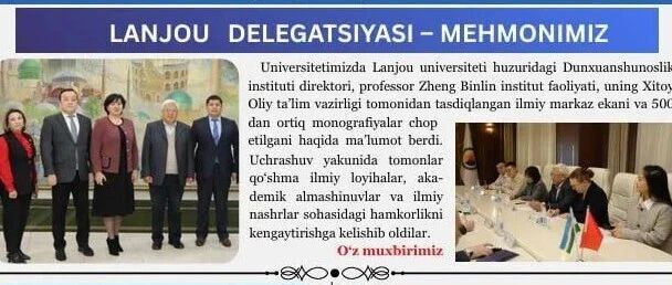 ![]() 乌兹别克斯坦塔什干国立东方大学:《我们的客人:兰州大学代表团》 兰州大学敦煌学研究所 发布时间2025/12/29 04:00:00 | - | - | - | 13 | 更多 |