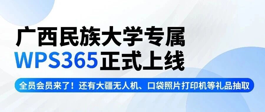 ![]() 民大专属WPS365上线,正版会员免费送!还送大疆无人机! 广西民族大学 发布时间2025/09/28 13:45:14 | 4 | - | - | 5761 |