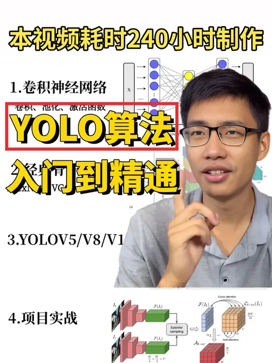 ![]() ![]() 本视频耗时240小时制作,YOLO算法入门到精通入门! 【2026最新YOLO算法教程】一口气讲完目标检测yolov1-v11,100集算法原理+项目实战,通俗易懂,草履虫听了都点头!-深度学习丨计算机视觉丨YOLO