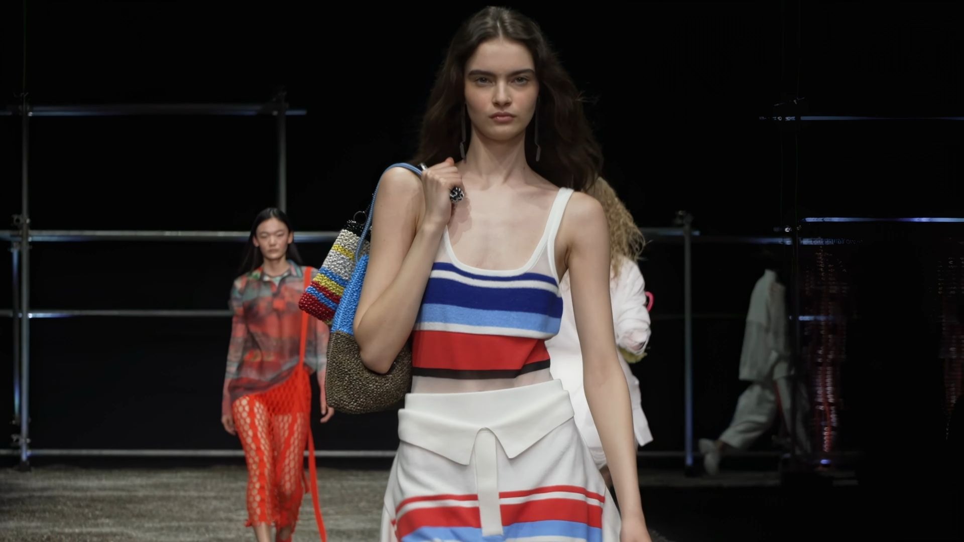 Ulla Johnson——2026春夏系列,粉色扎染面料的飘逸阔腿裤、以及对天然材质的运用,将复古美学与现代剪裁融合,演绎充满了诗意与质感,与图中呈现的“扎染工艺+柔美廓形”风格高度契合
