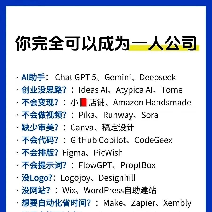 ![]() 🔥一人公司必备!15类AI工具,从0到1搞钱全靠它们 | 3 | - | - | 49 |
